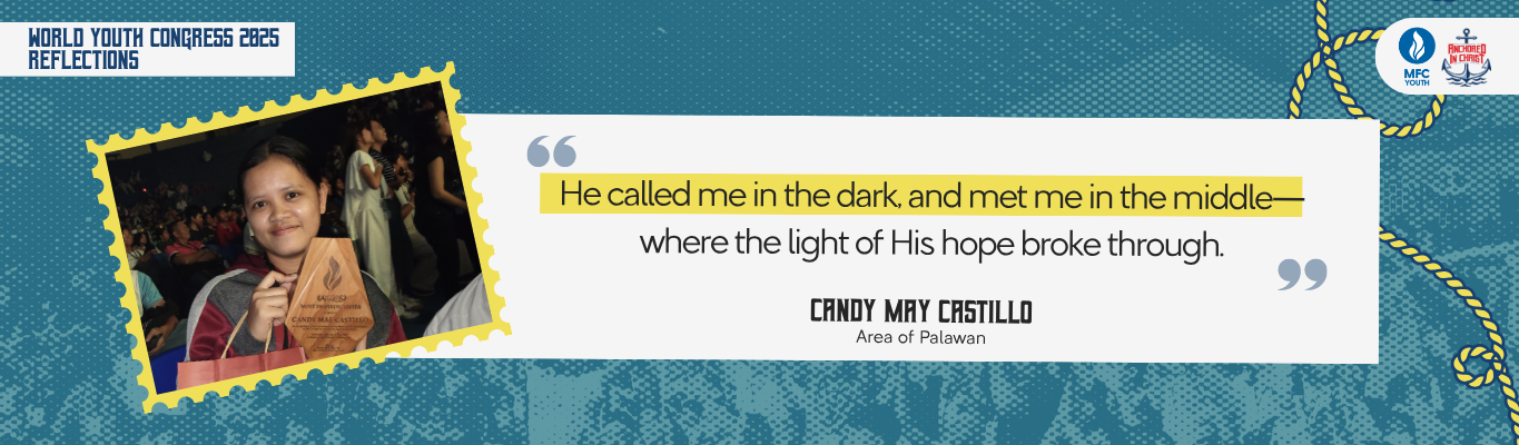 On the first day of WYC, my ulcer flared up. I had to be taken to the ambulance to rest just so I could perform in our all-out dance presentation. Despite the pain, I gave my best on stage. That evening, just after the All-Star competition, our professor suddenly sent an activity due at 11:59 PM. I worked on it while listening to the MFC Awards. Then came a surprise I didn’t expect our picture, MFC Youth Palawan, flashed on the screen. I was stunned. I was named as the Most Inspiring Sister. I had been nominated, yes—but never expected to be chosen. I cried while watching the video, overwhelmed and speechless. My area said they had been praying for it since the day they voted for me and I was so thankful for them even without the award, they always made me feel that I inspired them.