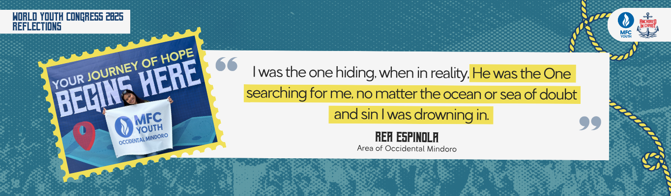 I didn’t doubt by saying “Lord, bakit ganon? Anak mo rin naman ako pero bakit ganito?” or “Bakit sila meron? Bakit ako ni kapirasong tiyansa wala?” No. I doubted by trying to find holes under His name—loopholes, if you will. I questioned, “Eh kung ganon, bakit mo ginanyan?” or “You stated that, then why is that?” Also, “Kung mapagpatawad ka, bakit sila hindi?” and “Kung ikaw ang may gawa, bakit may pagkukulang? May pagkakamali?”. These were the thoughts that used to run through my mind, thoughts that my current self would now laugh at and shake my head in disbelief. But during WYC 2025, I realized I wasn’t alone in feeling this way. I wasn’t the only one who felt unworthy or unseen by Him. In fact, I was the one hiding when in reality, He was the One searching for me, no matter the ocean or sea of doubt and sin I was under. I realized: I will remain anchored in Him.
