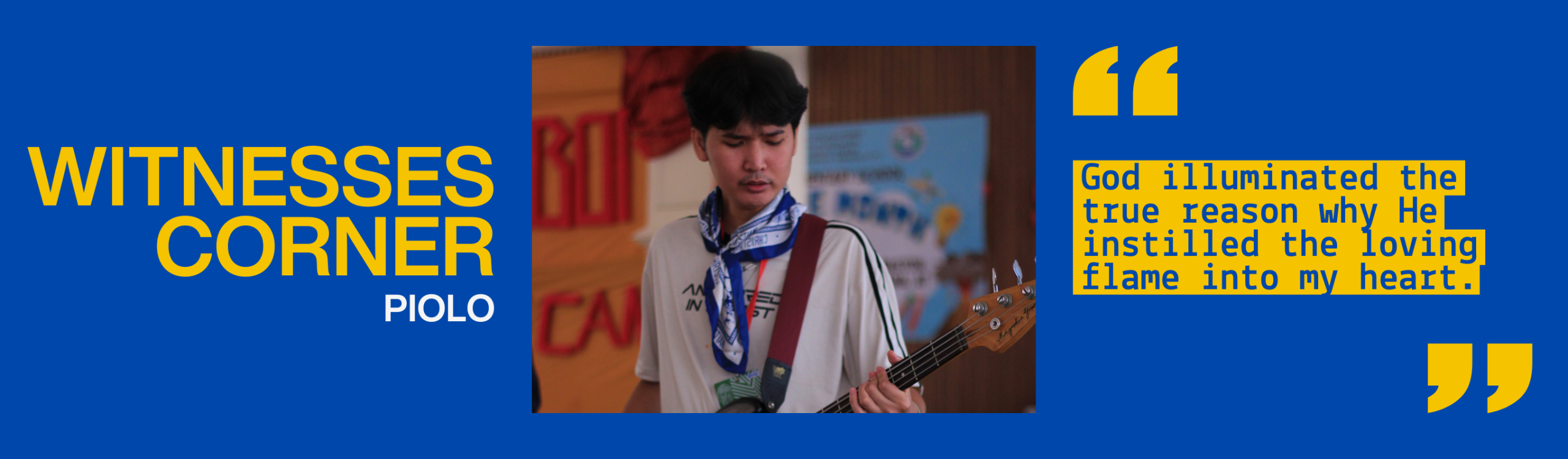 But after this creative camp, the favor of the Lord our God shined upon us. Illuminated the true reason why He instilled the loving flame into my heart. Experiencing a weekend with people who see their passion as something to give back to the Lord inspired me to pour it even more, but with the right purpose. My hands are unworthy but it became open for the Creative Spirit to pray and work for Him. I am Toni Piolo Mota, I was once a slave of praise from the world. But now, there is no other reason for me to pray and work if it is not for the Lord.
